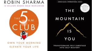 Books like “Atomic Habits” and “The 5 AM Club” teach readers practical methods for building better habits, structuring their day, and achieving goals, helping people break cycles of procrastination and build long-term success.