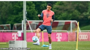 Jamal Musiala is still using crutches after breaking his leg at the Club World Cup but Bayern Munich hopes he'll be back by the end of the year.