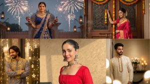 With just a prompt and a photo, reminisce about he charm of golden-era cinema, blending marigold garlands, glowing diyas, twinkling fairy lights, and sarees into share-worthy portraits perfect for festive greetings or social media.