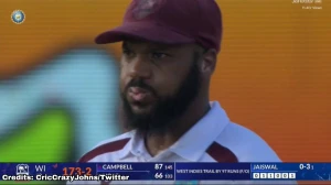 In the morning, Campbell completed his first ever Test hundred in 25 appearances with a slog sweep six off Ravindra Jadeja over the cow corner.