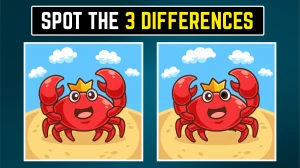 This brain teaser challenges your observation skills by asking you to find 3 subtle differences between two similar crab pictures within 10 seconds.