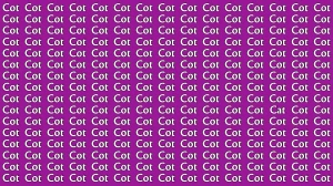 This brain teaser is designed to test your attention to detail and concentration. At first glance, the image appears to be filled entirely with the word "Cot" repeated in rows and columns.
