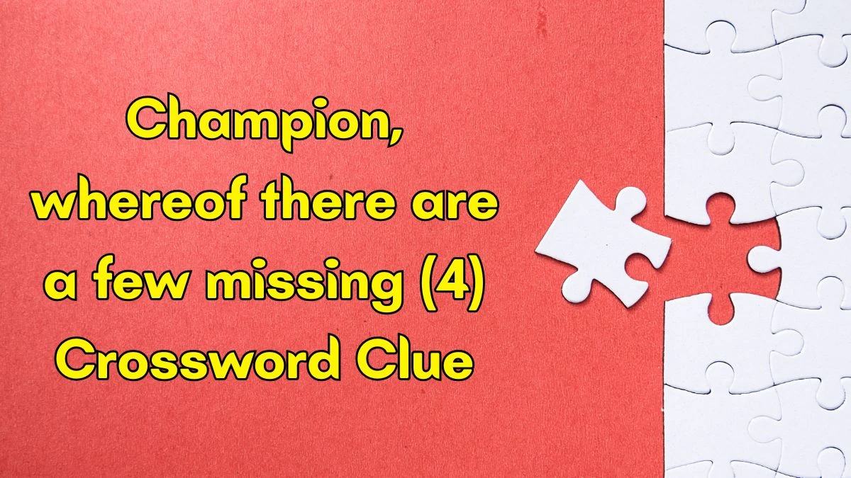 The answer to the crossword clue "Champion, whereof there are a few missing" with 4 letters is "HERO".Hero refers to a champion or someone admired for their courage, achievements, or noble qualities. The phrase "whereof there are a few missing" suggests the word is incomplete or missing letters, but in this case, "hero" is a fitting answer, symbolizing a figure celebrated for overcoming challenges.