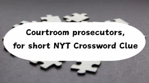The term "for short" signals that the clue requires an abbreviation; "DA" stands for District Attorney, and the plural "DAS" refers to multiple such officials. These prosecutors are responsible for reviewing evidence, filing charges, conducting trials, and working with law enforcement to prosecute individuals accused of crimes.