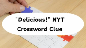 Delicious as an exclamation perfectly matches "yum," an informal expression of gustatory pleasure. This short answer fits well in crossword grids where space is limited. The exclamation point in the clue often signals that solvers should think of interjections or casual expressions rather than formal adjectives.