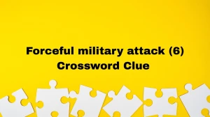 In quick crosswords, a clue like “forceful military attack (6)” points to a strong, action-oriented noun: