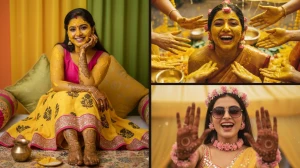 - Highlight Key Elements: Focus the prompt on vibrant yellows, traditional outfits, glowing skin tones, and festive props (flowers, bangles).