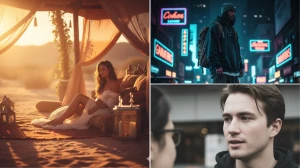 - "Give this photo an urban, street-style aesthetic. Place the subject on a busy city street with soft neon signs in the background. Use a shallow depth of field to blur the background, and apply moody, cinematic lighting with a slight blue tint."