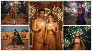 - Include Outfits & Props: Mention kurtas, sarees, diyas, candles, or rangoli for authentic festival vibes.