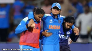 Rawal got close to the ball but due to her feet getting jammed, she fell down on the ground conceding a four as her teammates and India’s support staff ran quickly to assist her.