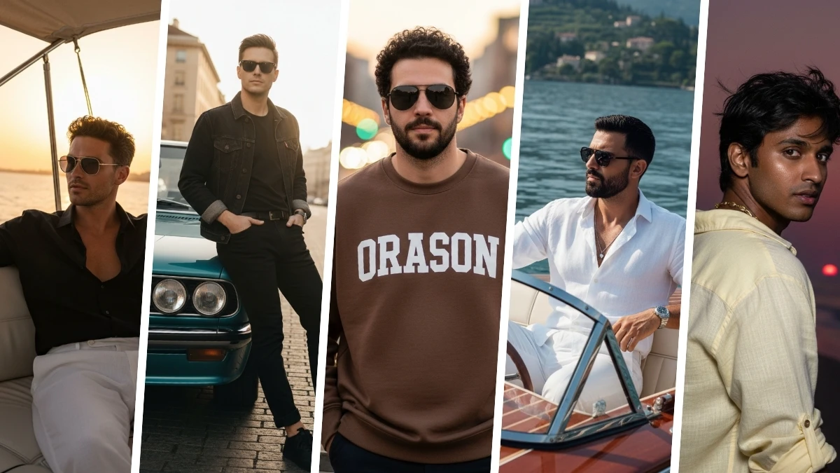 Whether you prefer a sophisticated business vibe, vintage festival looks, moody black-and-white, or dynamic outdoor action, these 20 prompts give boys endless options for fresh, professional-grade images, no photographer required.