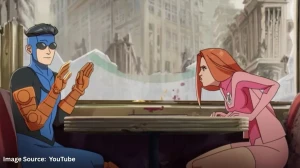 The teaser finds Mark Grayson and Atom Eve sitting in a wrecked Burger Mart, trading jokes about Mark’s losing streak. The tone is rough and dark, laying out the stakes. Mark says people always complained he couldn’t win fights, calling back to brutal battles and big losses from last season. He jokes about beating Conquest, setting up the chaos for this new chapter. The clip ends with Mark saying, “Season 4 is nuts.”
