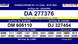 The Kerala State Lottery Department today announced the results of the Dhanalekshmi DL 11 draw, conducted at Gorky Bhavan, Thiruvananthapuram, at 3 PM on 30/07/2025. The draw was held under stringent supervision in line with government procedures.