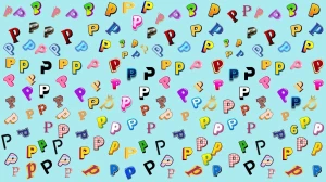 This image offers a fun and challenging visual puzzle where numerous colorful and uniquely styled letter "P"s are scattered across a bright blue background.