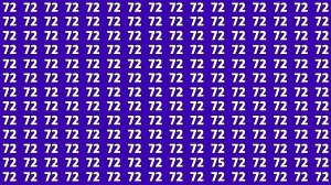 The number "75" is placed in the lower-right section of the grid, slightly off-center. While all the other numbers are "72," the number "75" has a slight increase in value, making it the anomaly in this pattern. The visual trick is that our brain tends to look for patterns, which makes it easy to overlook the difference between the numbers at first.