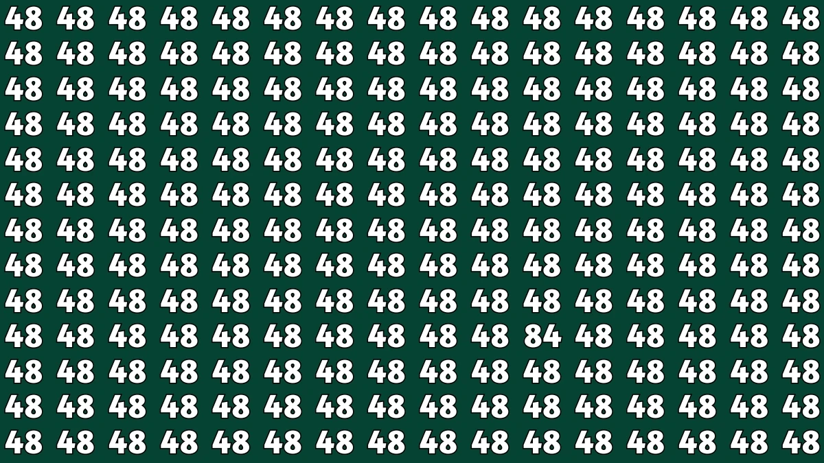 In the puzzle, you are challenged to find the number 84 among a series of 48s within 7 seconds. The key to solving this is to scan the grid carefully and focus on the slight difference in the numbers. While the majority of the grid contains 48s, one spot has a distinct number 84. Upon close inspection, the number 84 is located in the fourth row from the bottom and the sixth column from the right. It’s easy to miss at first because the 84 blends in with the surrounding 48s. This puzzle tests not just your speed, but also your ability to spot differences in a sea of repetition. The number 84 breaks the pattern of 48s, making it the key focal point. Once you know its location, it becomes an interesting exercise in observation and quick visual processing.