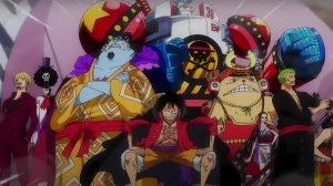 The story follows Monkey D. Luffy, a young pirate with rubber-like powers, as he journeys with his crew to find the legendary treasure known as the "One Piece" and become the Pirate King. The anime is split into two major sagas: Sea of Survival: Super Rookies Saga and The Final Sea: The New World Saga. In April 2025, the series transitioned to a new timeslot after a five-month hiatus. During this break, special edited episodes of the Fish-Man Island Saga were aired.