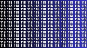 In this optical illusion challenge, the goal was to spot the hidden number 115 among a grid full of repeating 118s, all within 7 seconds. At first glance, the entire image seems uniform because the numbers are arranged closely together in neat rows, making it hard for the eye to distinguish subtle differences.