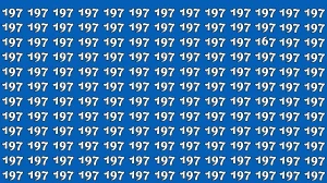 In this optical illusion challenge, you were asked to spot the number "167" hidden among several instances of the number "197" all within just 7 seconds. At first glance, the numbers appear nearly identical, making it difficult to detect the odd one out.