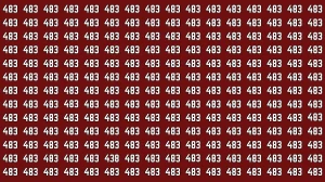 This is a classic optical illusion where the goal is to spot the number "438" hidden among several "483" numbers. At first glance, the array seems uniform, with every digit appearing as "483."