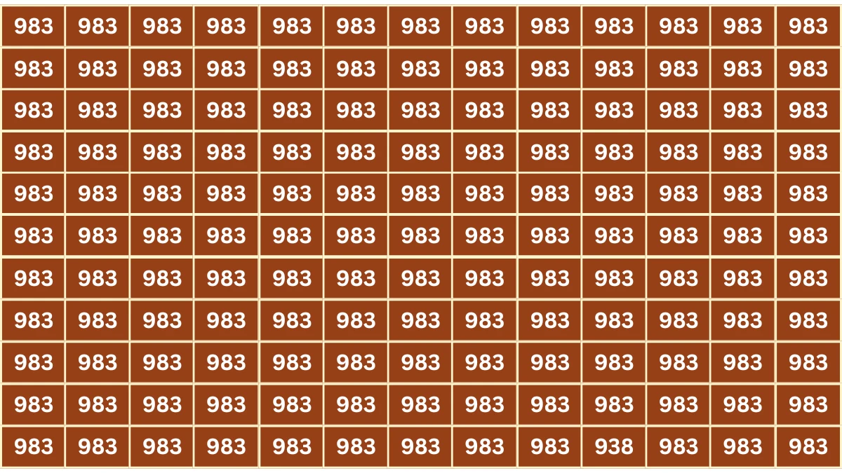 This optical illusion challenge tests both your attention to detail and quick visual processing. The image presents a series of numbers, mostly "983," but hidden within them is the number "938."