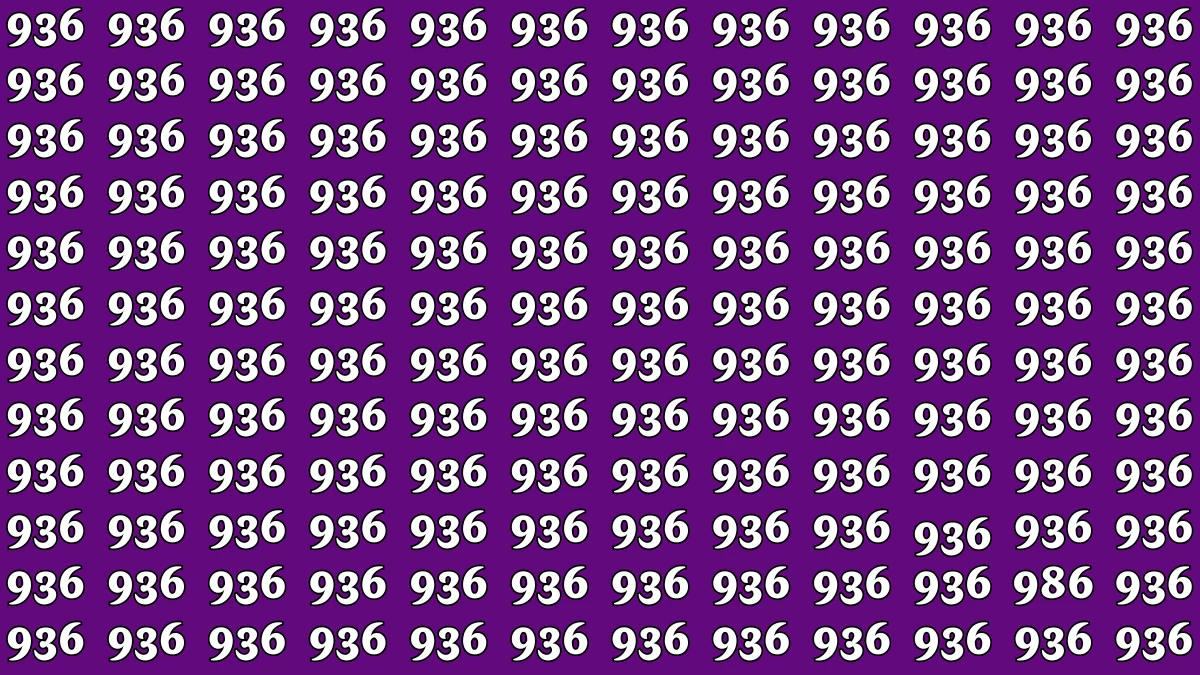 Do you think you have the sharp eyesight of an eagle? This optical illusion challenge will put your observation skills to the ultimate test! The image is filled with repeating numbers 936, but hidden among them is one tricky number 986. Your task is to find it within just 7 seconds.