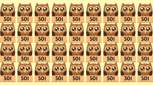 Among the many similar-looking “501” numbers displayed on wooden boards held by owls, the distinct “301” blends seamlessly with the design, making it tricky to notice at first glance.