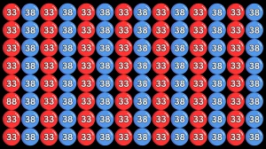In this optical illusion challenge, the number 88 is cleverly hidden among a sea of 33s and 38s, making it quite tricky to spot at first glance.