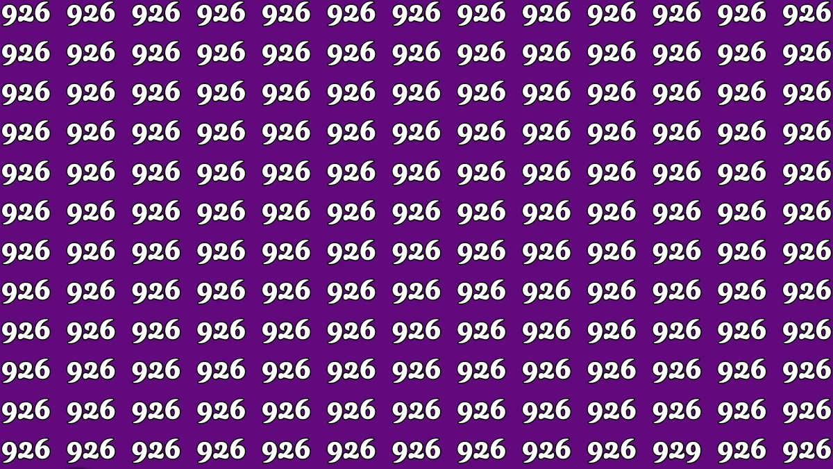 In this optical illusion challenge, the grid is packed with the number 926 repeated in the same font and spacing, making every cluster of digits look almost identical at first glance.