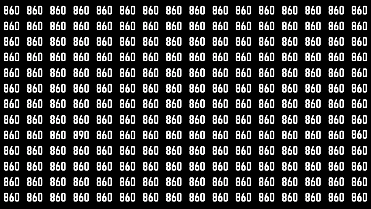 In this optical illusion challenge, your goal is to spot the number 890 hidden among a grid of 860s, testing how sharp your eyes are. The repetitive sequence of 860s makes it difficult to distinguish the odd number at first glance, requiring both concentration and quick recognition skills.