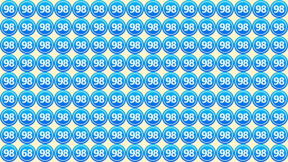 In this optical illusion, you're presented with a grid filled with numbers, specifically the number 98. However, cleverly hidden in this sea of numbers are the 88 and 68. Your task is to spot both of them, but here’s the catch: You only have 9 seconds to do so!