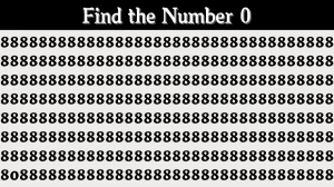 At first glance, the image appears to be filled entirely with rows of the number "8." But hidden somewhere among them is a single "0," blending perfectly into the pattern. Your mission is to find that elusive "0" before the time runs out.