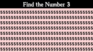 In the given optical illusion puzzle, the challenge is to find the number 3 hidden among a grid filled with the number 5. At first glance, all the numbers appear identical due to their similar shapes, especially when placed in a dense and repetitive pattern.