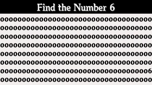 In this optical illusion IQ test, you’re asked to quickly spot the number 6 hidden among a grid of zeros. The challenge is to identify it within just 6 seconds, testing your observation skills and attention to detail.