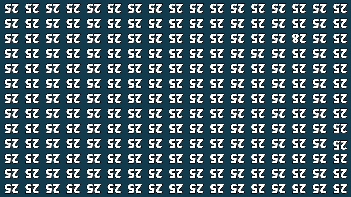 In this optical illusion IQ test, you're tasked with spotting the inverted 28 hidden among the inverted 25s in just 7 seconds. At first glance, all the numbers may seem identical, but if you closely observe the orientation of the numbers, you'll see that most of them are flipped versions of 25.