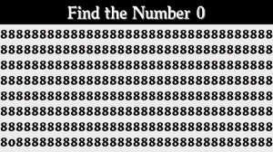 At first glance, the image seems to be filled with rows and rows of the number 8. But look closely—somewhere among them is a single 0 hiding in plain sight. Your task is to find that 0 within 7 seconds. It might sound easy, but the similar shapes of 8 and 0 make this visual puzzle surprisingly tricky.