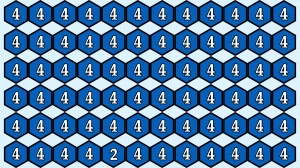 At a glance, all the blue hexagons appear identical, each containing the number 4 in a similar style, which makes spotting the 2 particularly tricky.