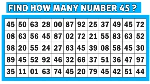 In this optical illusion IQ test, the challenge is to find how many times the number 45 appears within a grid full of distracting two-digit numbers — all in just 7 seconds.