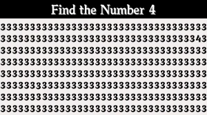 Because the numbers are so similar, your brain has to focus carefully to distinguish the unique shape of the 4 from the surrounding 3s. Successfully finding the 4 quickly can indicate strong cognitive abilities and sharp observational skills, which are often linked to high intelligence.