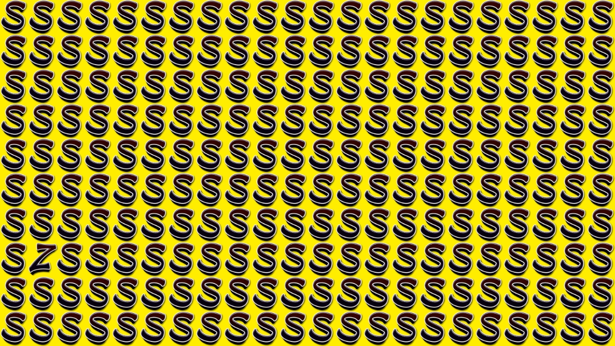 This optical illusion IQ test challenges your ability to spot subtle differences in a crowded, seemingly uniform pattern. In this test, you're asked to find another letter hidden among a sea of 'S's.