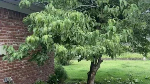 In this optical illusion, the hidden raccoon is camouflaged remarkably well among the tree branches and leaves. If you look closely at the upper left portion of the tree, just near the edge of the roof where the foliage is dense, you’ll notice the raccoon peeking through the leaves.