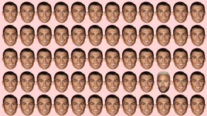 This optical illusion challenges viewers to find Neymar's face hidden among a grid of identical Cristiano Ronaldo faces. At first glance, all faces appear the same, but a closer look reveals subtle differences.