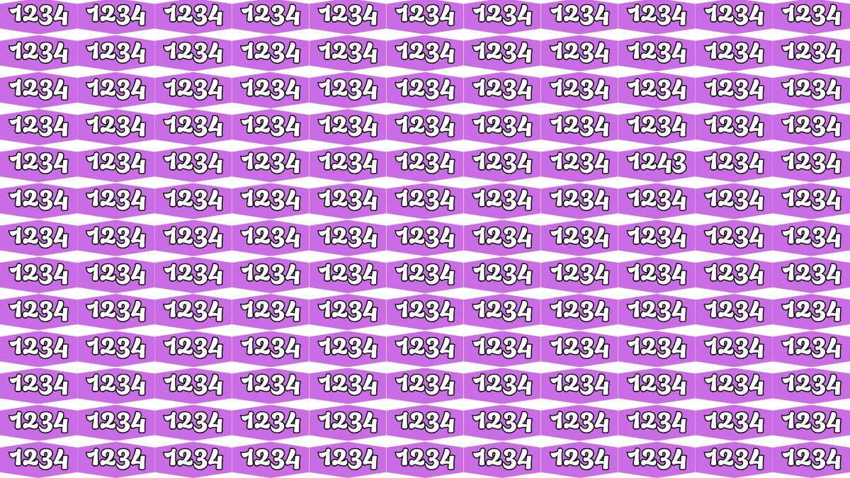This Optical Illusion Puzzle IQ Test challenges your visual perception and quick-thinking abilities. In this puzzle, you're presented with a sequence of numbers, most of which are 1234, but hidden within them is the number 1243.