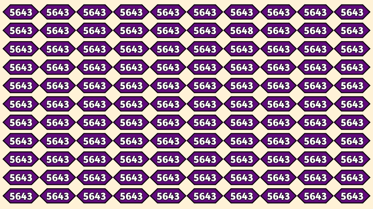 The number 5648 is located in the 2nd row, 4th column from the Right. While the numbers 5643 appear identical throughout the grid, the number 5648 has a subtle difference the 8 replaces the 3.
