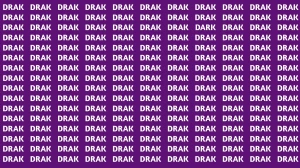 The visual trick lies in this small yet significant difference, which stands out from the other words. The challenge is to quickly recognize this subtle variation among the repeating pattern of "DRAK."