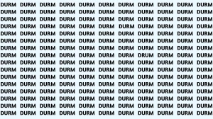 In this Optical Illusion Visual Test, your challenge is to spot the word "DRUM" hidden among several instances of "DURM" within just five seconds. This test is designed to assess your visual perception and cognitive skills.