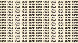 The optical illusion test lies in spotting the word "CARD" amidst the repeated "CRAD" words. This type of visual challenge tests both focus and attention to detail.