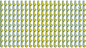 Upon closer inspection, you can spot the number 1 in the top right corner, clearly distinct in its straight, vertical structure compared to the curved hook-like shape of the inverted J's.
