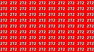 At first glance, the image appears to be filled with repeated sequences of the number 272 in bold font. However, hidden somewhere within this pattern is the number 572. Your mission is to spot the odd number out as quickly as possible.