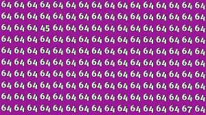 This optical illusion is a fun and engaging visual puzzle designed to test your observation skills and attention to detail. In the image, a large group of the number 64 is displayed repeatedly, but hidden within this sea of 64s are the numbers 45 and 67.
